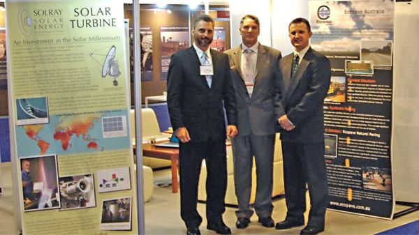 Guy in his pavilion at the UNEP Environmentally Sound Technology Showcase in Dubai 2006. This event was electrifying, and prompted Guy to start writing novels, the first of which was titled The Oil Price.