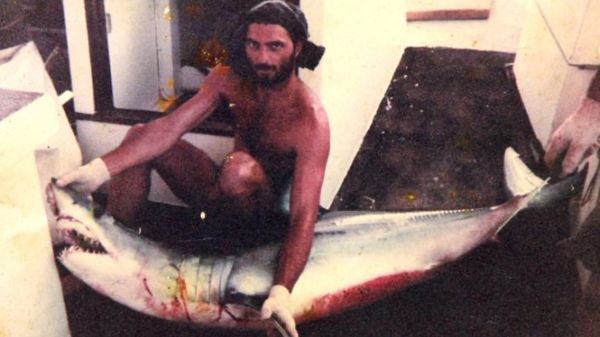 Prior to his ecophany, Guy participated in all manner of ecocidal behavior including commercial fishing on tuna long-liners. Here, he poses with a short-fin mako shark caught off Frazer Island in 1999 on a tuna boat called Rainbow Warrior. True story.