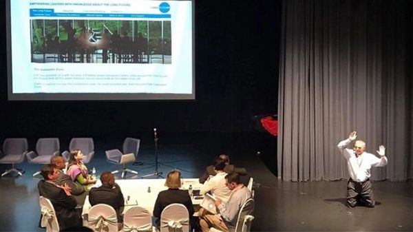 Guy presents what is now Vita Sapien to an international audience titled Emerging Leaders Dialogues Asia in Kuala Lumpar in 2016. The photo shows the opening sequence where he says, "If we were in right relationship with the Living Planet, we would be on our knees begging her not to kill us."