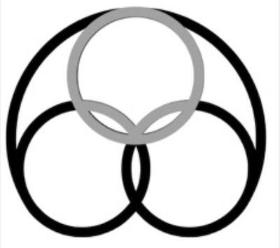 The upper, inner circle forms the shape of the Verda, the symbol of the Verdant Age, the future time when humans and the Living Planet thrive in synergy, deep into the Long Future.